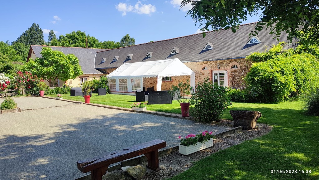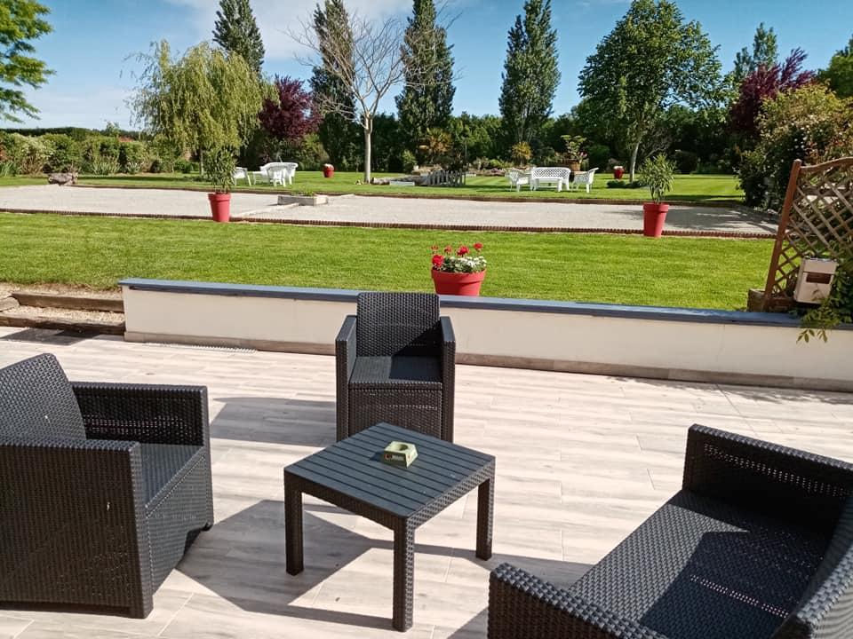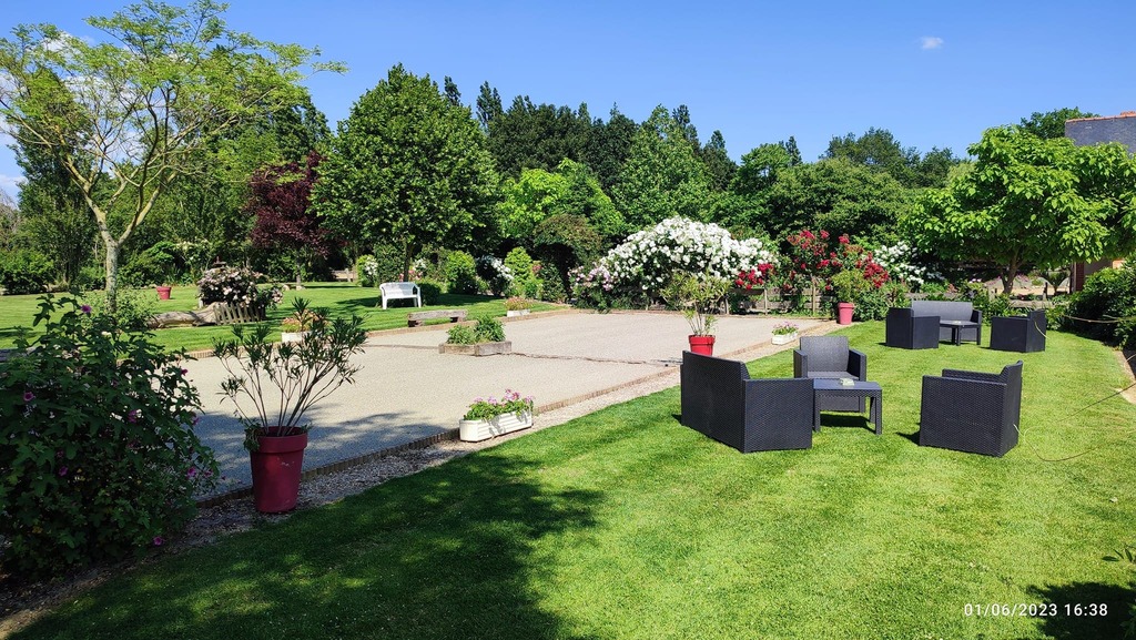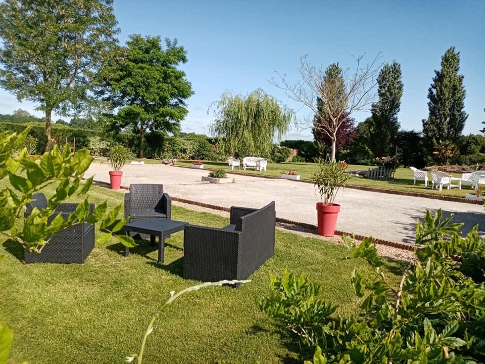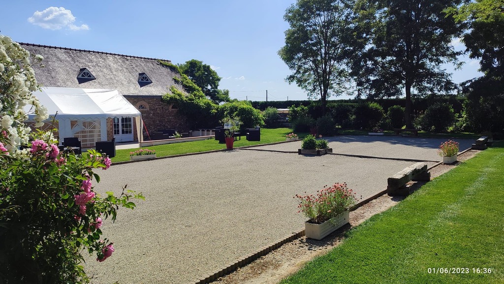 A l’extérieur, une terrasse et un espace vert ainsi qu’un terrain de pétanque, vous permettront de passer un agréable moment.