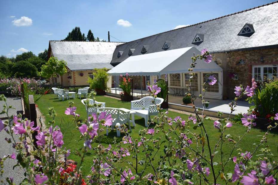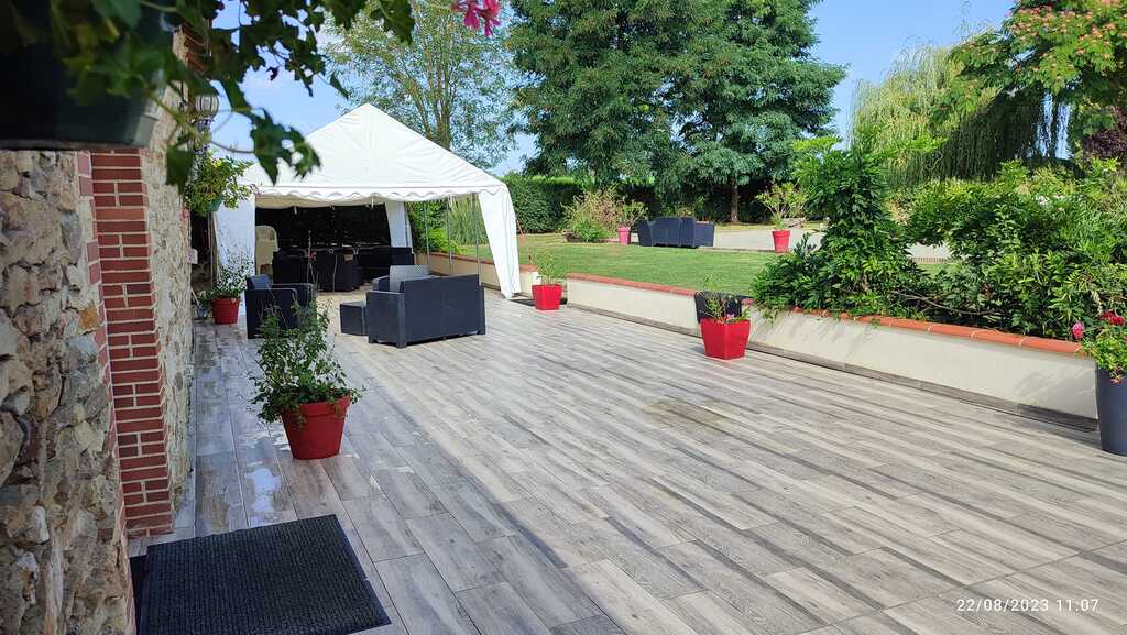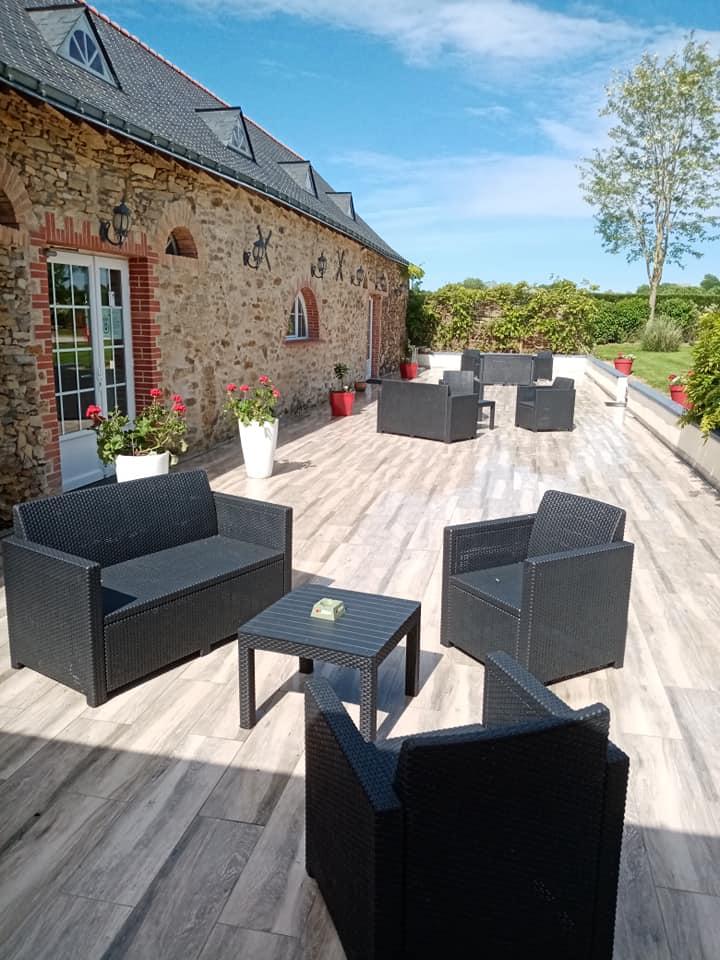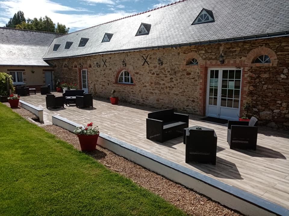 Une extension de 140 m2 a été réalisé entre les deux batiments permettant ainsi de créer les espaces cuisines et sanitaires de nos deux salles au rez de chaussée et nos différentes chambres à l’étage.