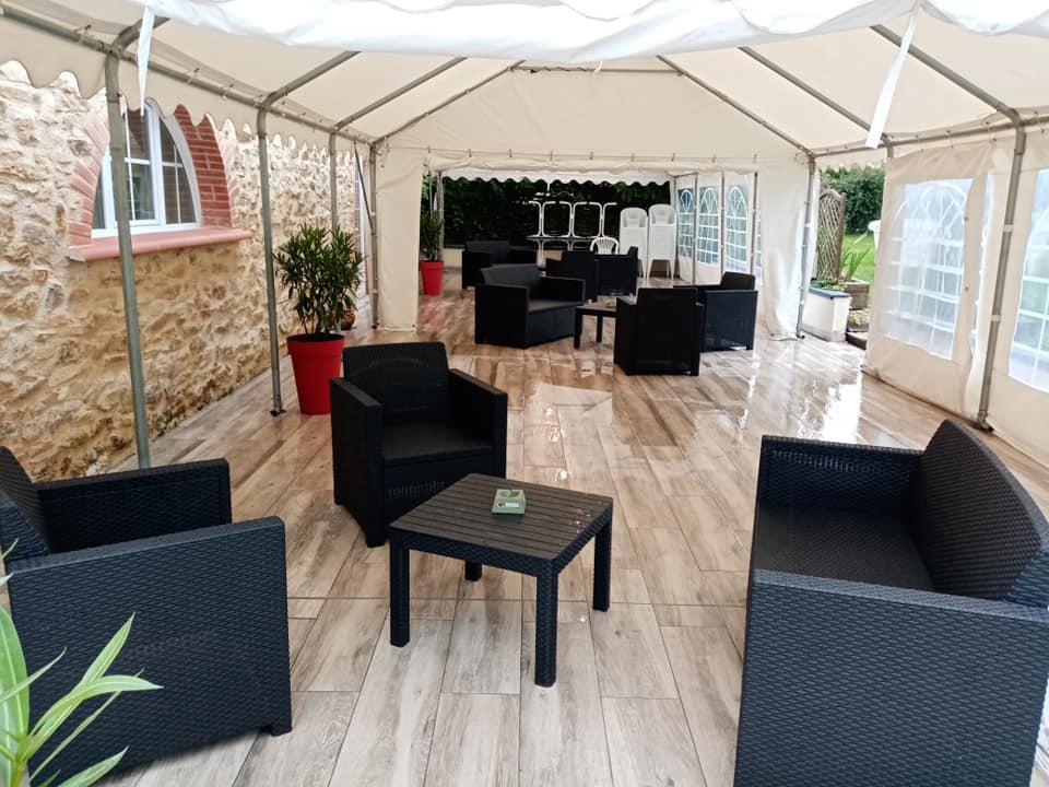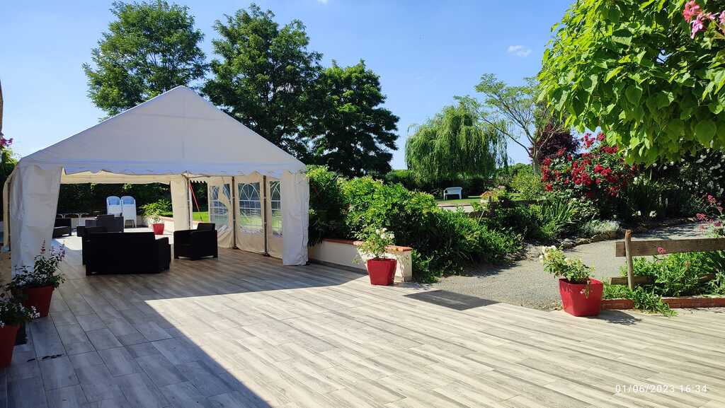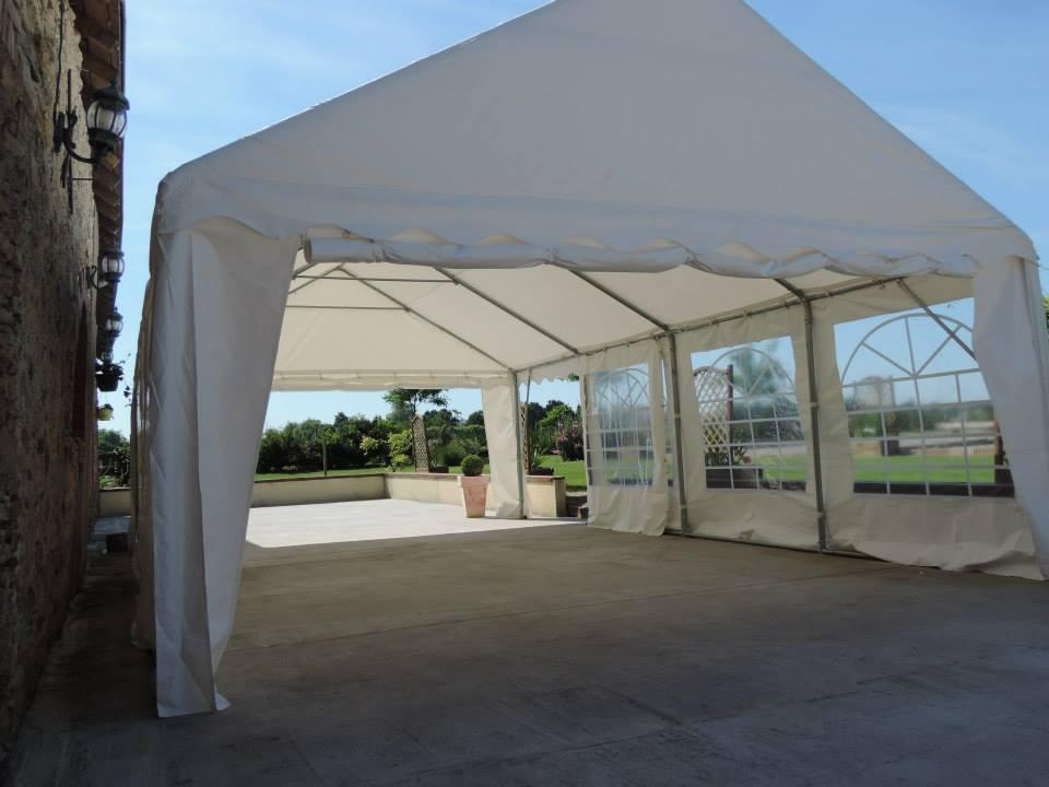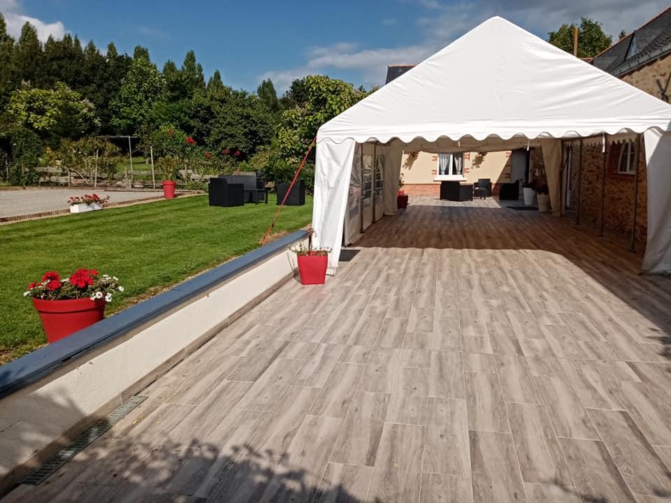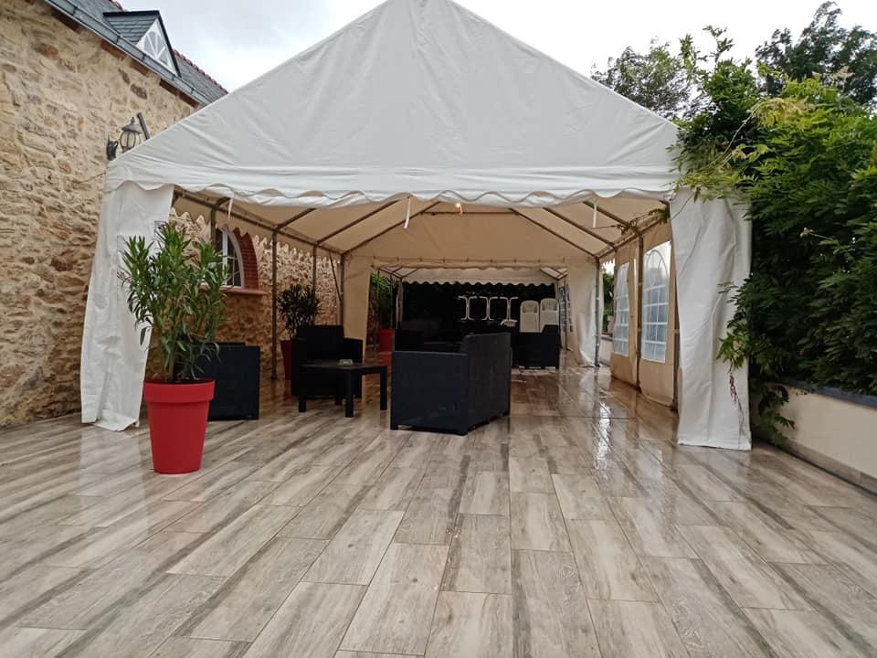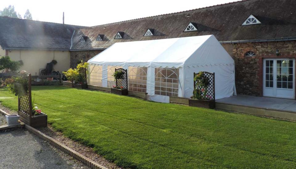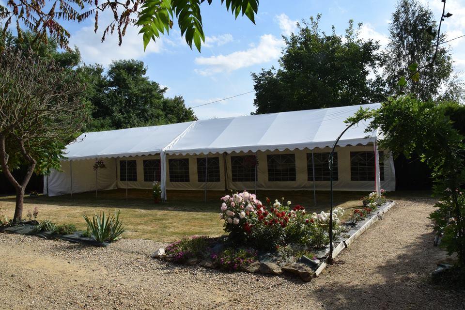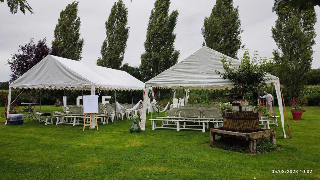A disposition sur notre site 5 tentes de réception 5m x 8m. De cette façon nous pourrons vous les installer à l’endroit de votre choix ( Cérémonie laïque, vin d’honneur, sur terrasse ou espace vert, avec éclairage inclus. Nous disposons également un barnum pliant 3m x 3m.