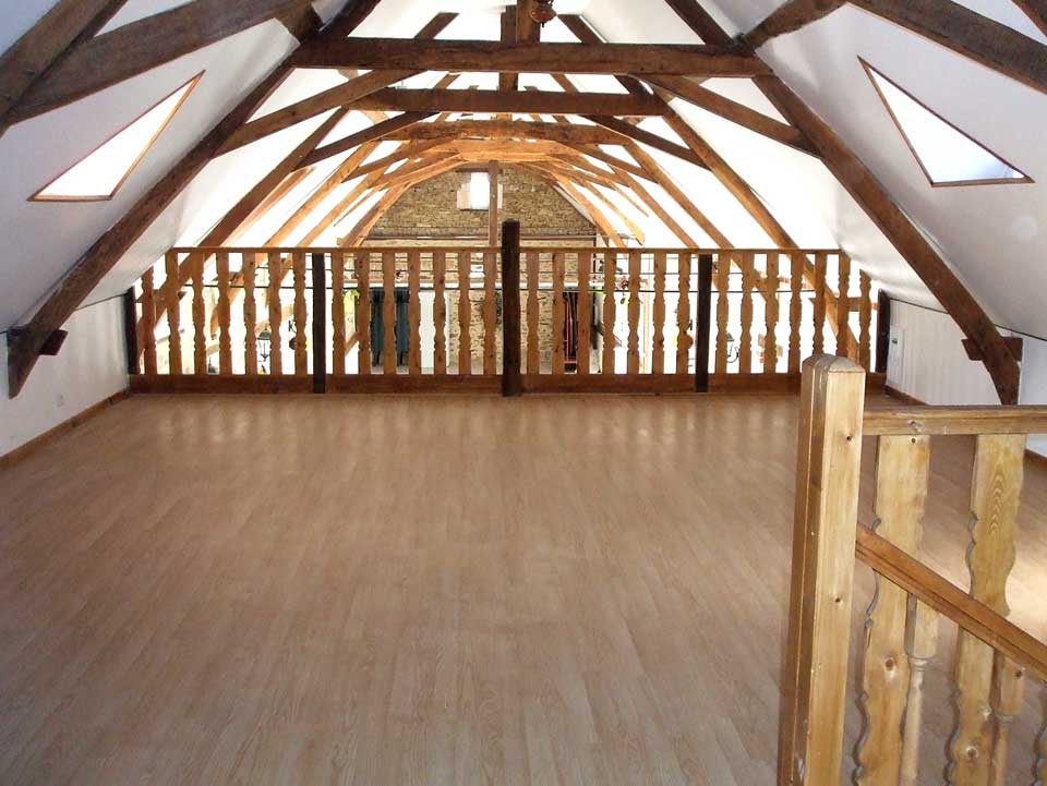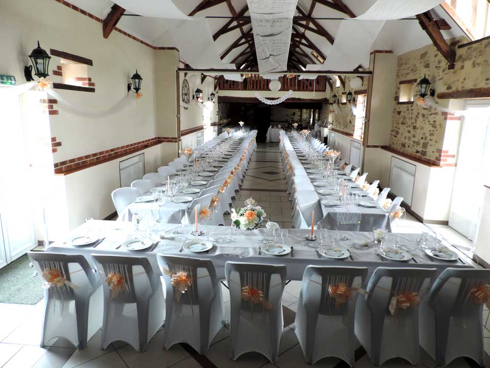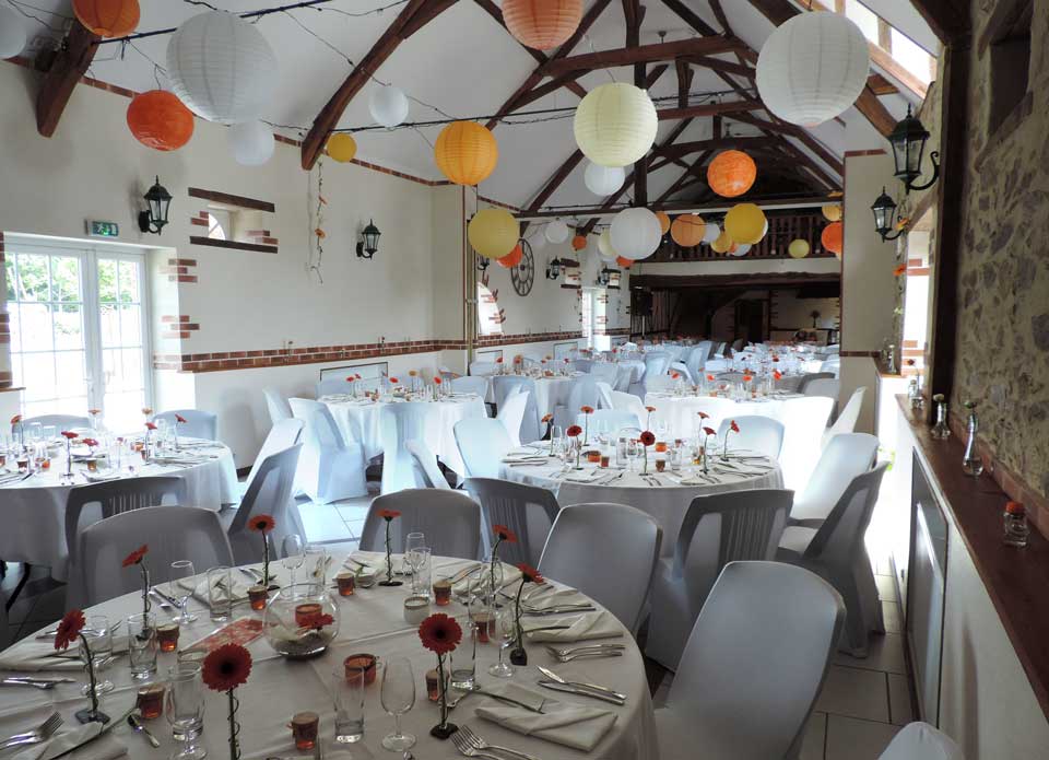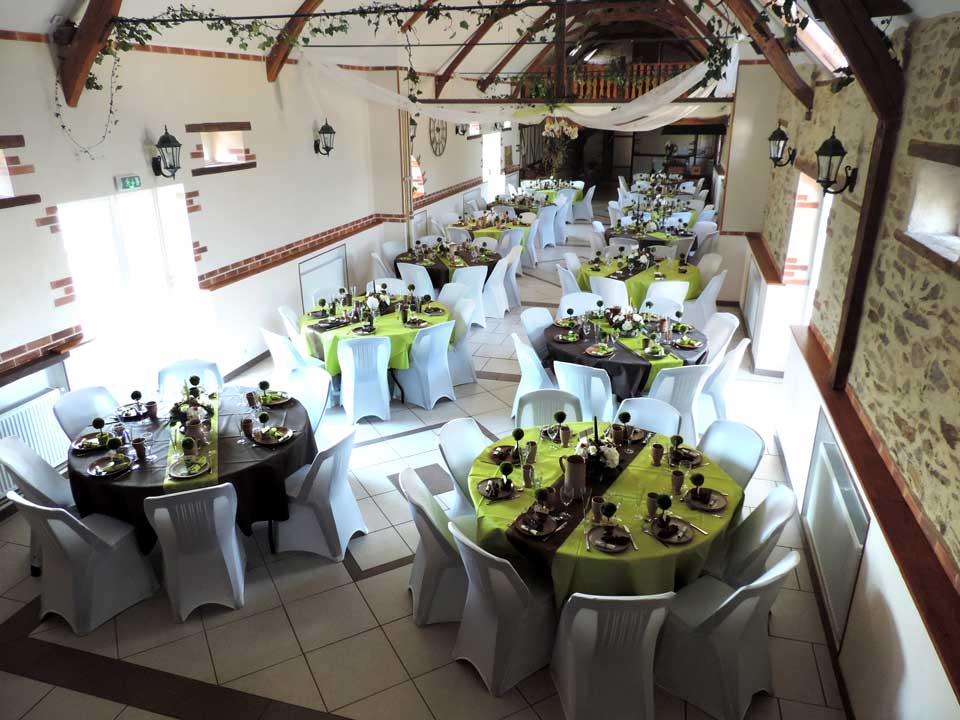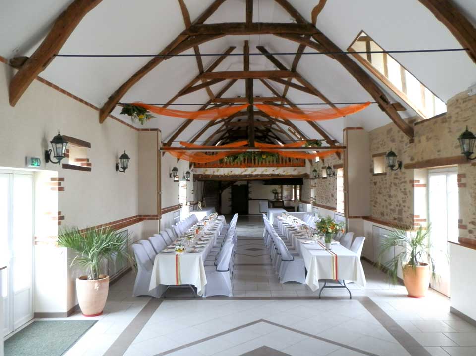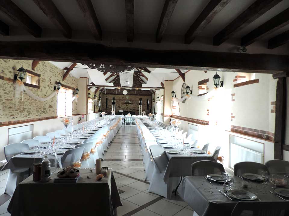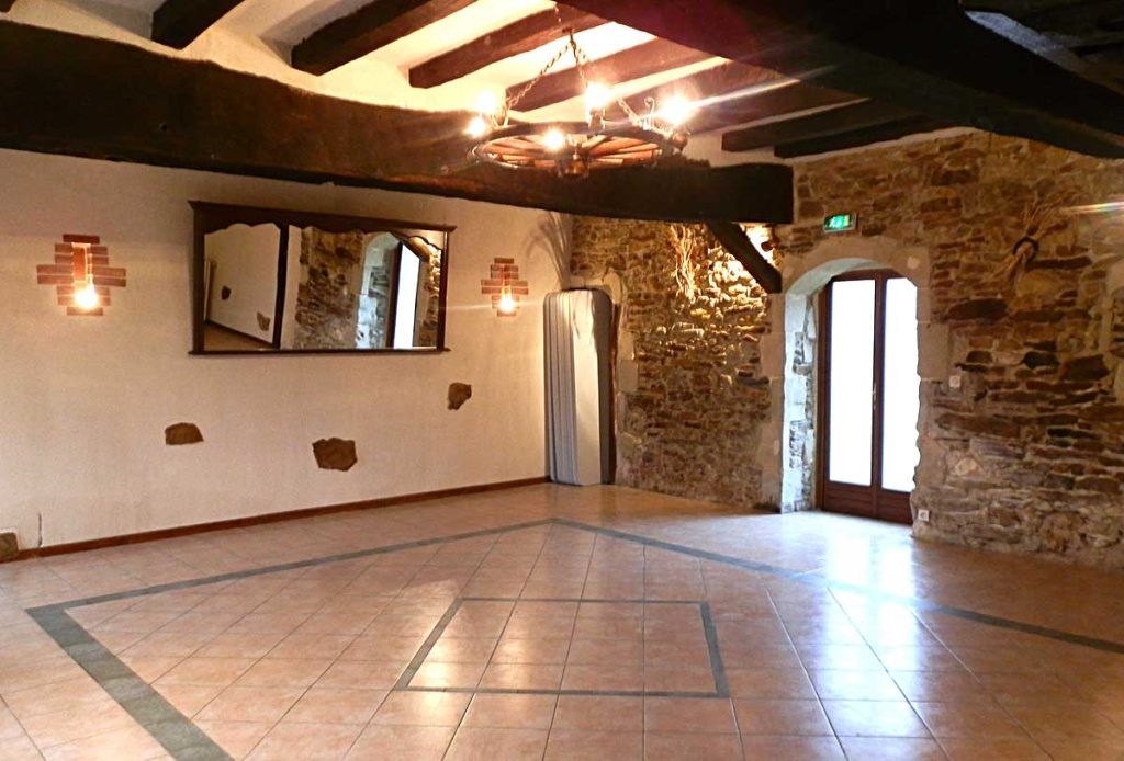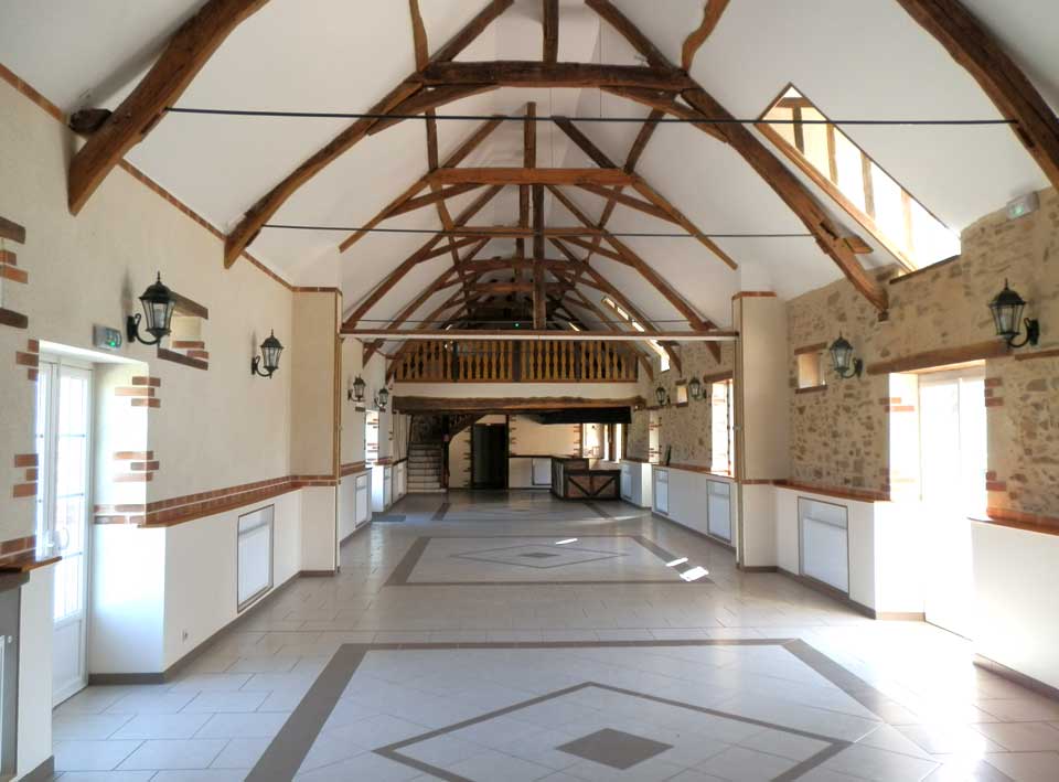 La Grande Salle disposant d’un potentiel beaucoup plus important vous charmera avec sa charpente apparente, ses vieilles pierres ainsi que ses murs en colombage qui en font un endroit magnifique.