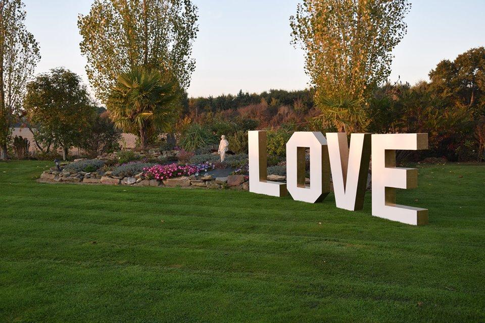 La touche finale sera assurée par ces magnifiques lettres LOVE aux couleurs des fauteuils et du pupitre. Hauteur 1.20 M de quoi ne pas passer inaperçu.